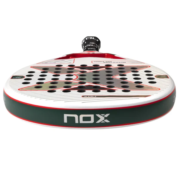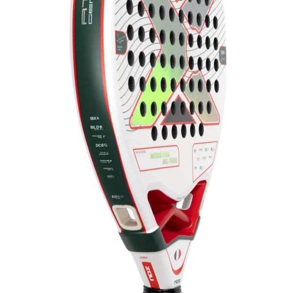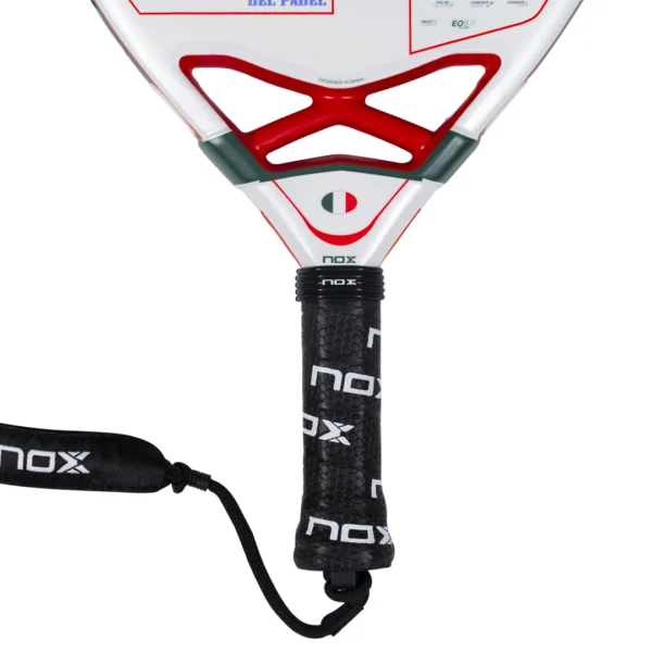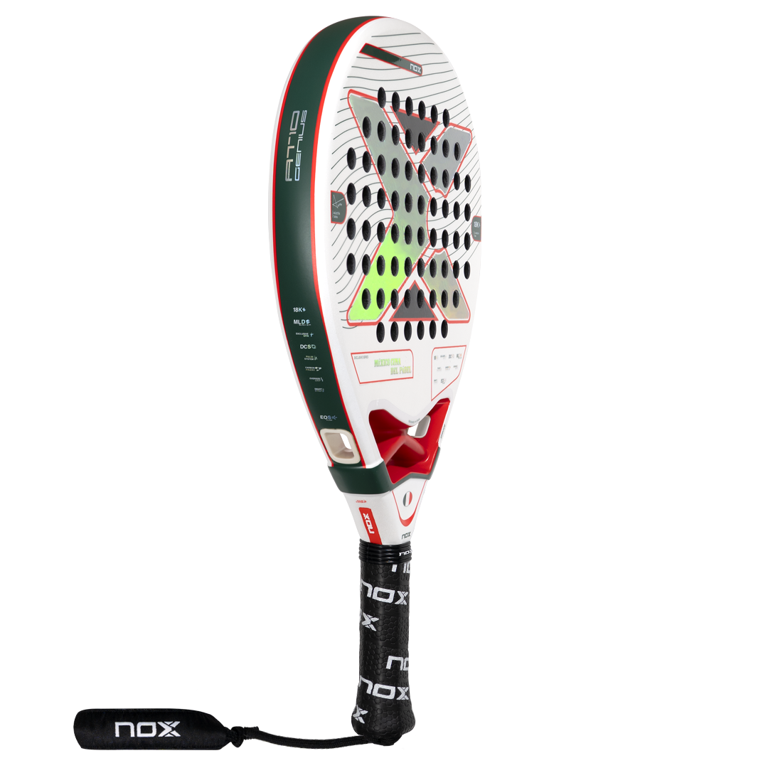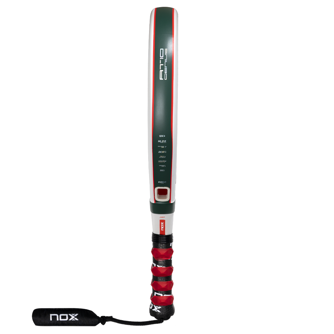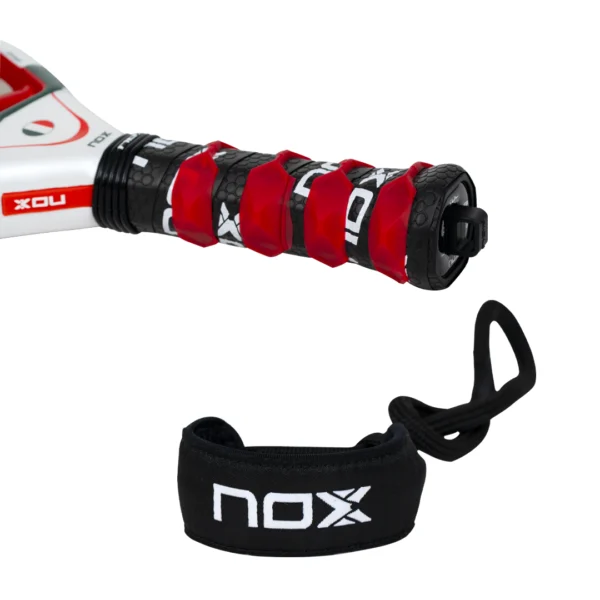 La jugabilidad se completa con un Grip rojo y negro de textura envolvente que asegura una sujeción firme en cada movimiento. Además de la seguridad proporcionada por el sistema de cordón NOX Smartstrap®, la pala se acompaña de un llavero coleccionable en forma de pala, perfecto para los verdaderos aficionados.