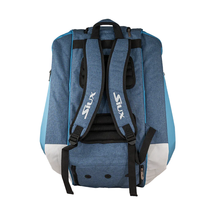 El paletero Siux Pro Tour, disponible en varios colores, es el modelo más completo de la marca y está diseñado para jugadores exigentes que necesitan espacio, comodidad y organización. Cuenta con dos compartimentos laterales ideales para guardar tus palas de pádel con total seguridad, un compartimento central de gran capacidad para ropa o accesorios, un bolsillo independiente para las zapatillas y un bolsillo lateral adicional perfecto para objetos personales o pequeños accesorios.